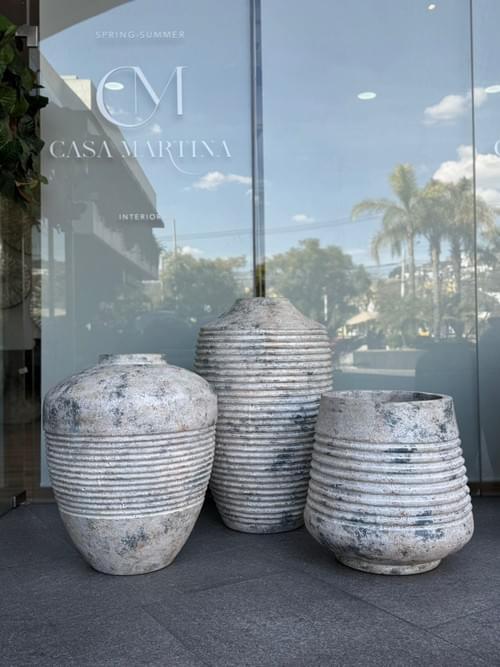 Dimensiones: Gde. 1m alto x 18cm diámetro boca x 55cm diámetro máximo
