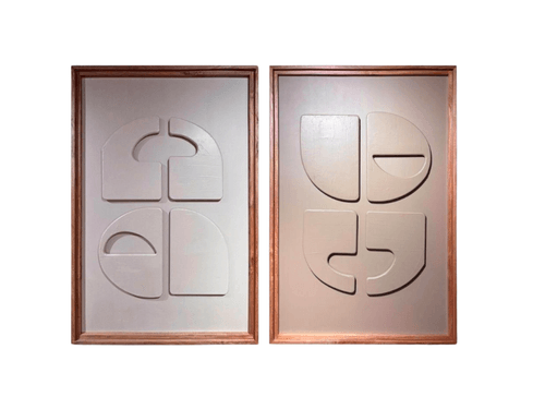 Cuadros de alto relieve de madera, con marco de rosa morada.